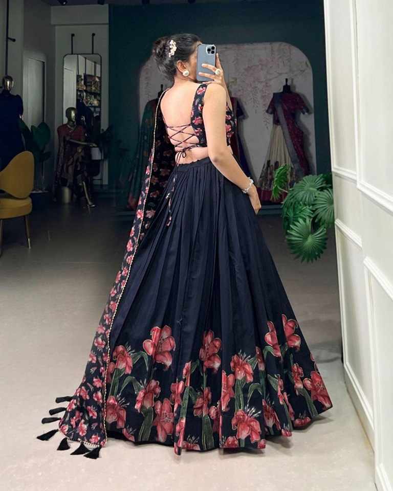 | Name : | PIYU 27-1 Silk Digital print Black Lehnga |