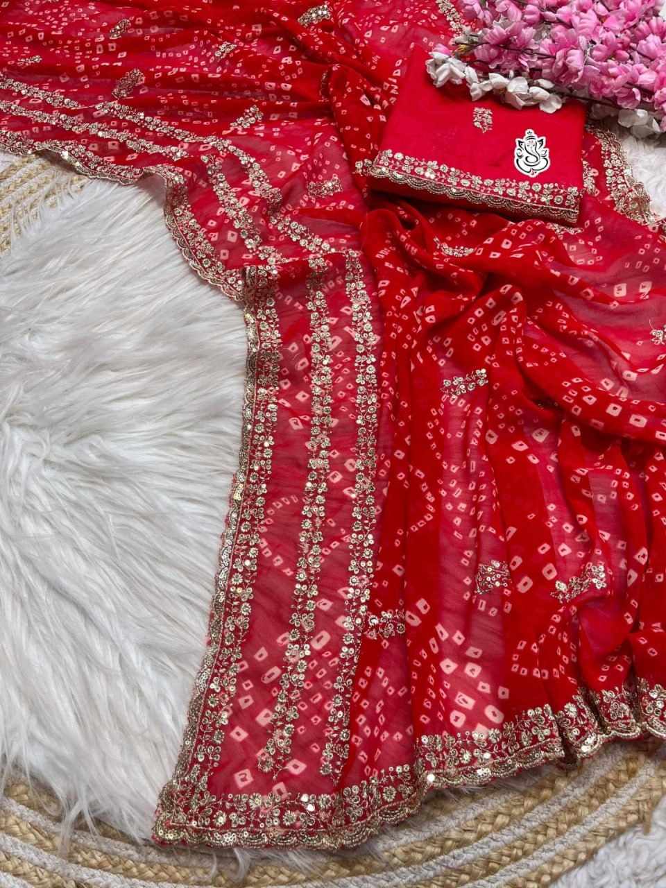 | Name : | PIYU P1033 LERIYA BANDHANI RED SAREE |