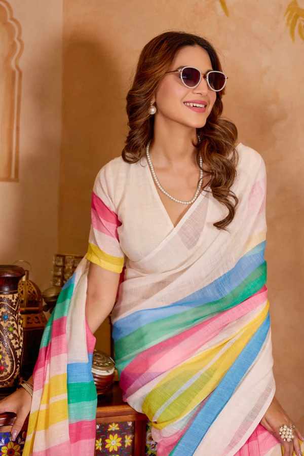 | Name : | PIYU P1039 White rose Saree |